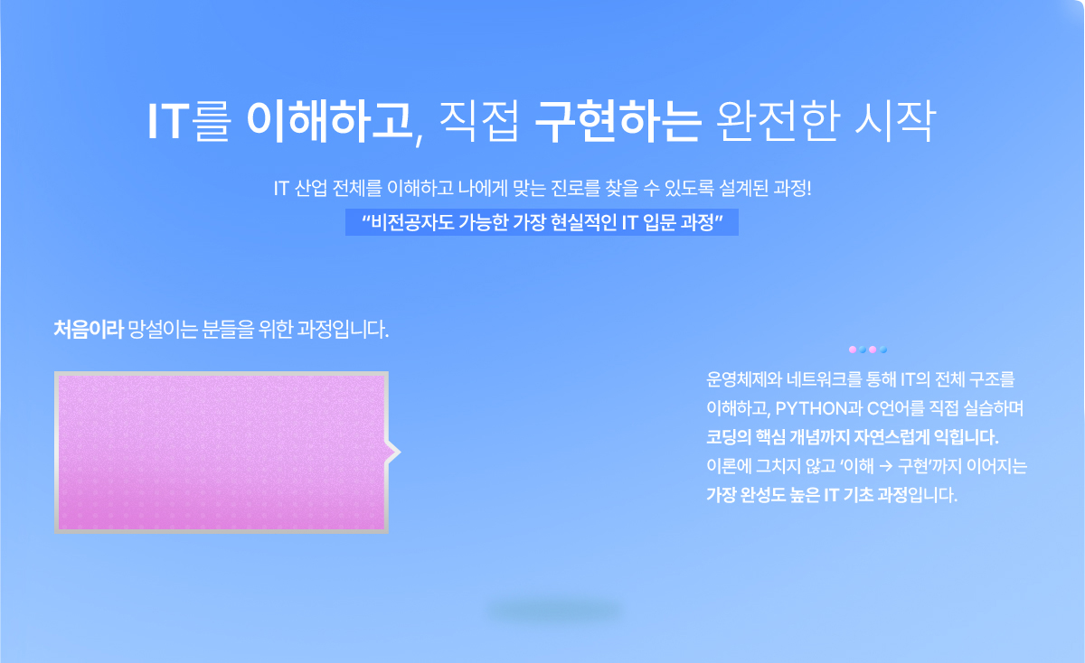 막연하게 IT 하고 싶었는데 이제 어떤 방향으로 가야 할지 감이 잡혔어요.