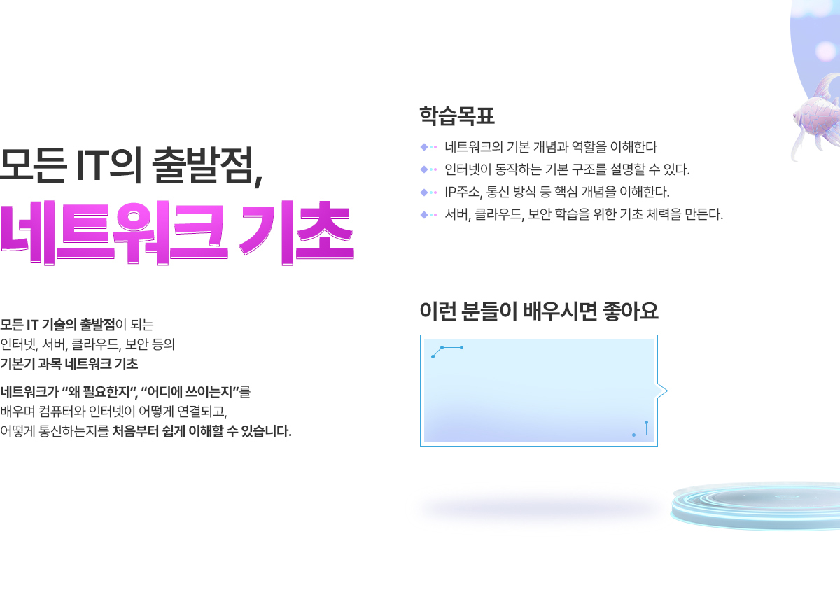 네트워크 기초를 들으면서 왜 이런 구조가 필요한지 등 기초적인 설명이 많아서 좋았어요.
